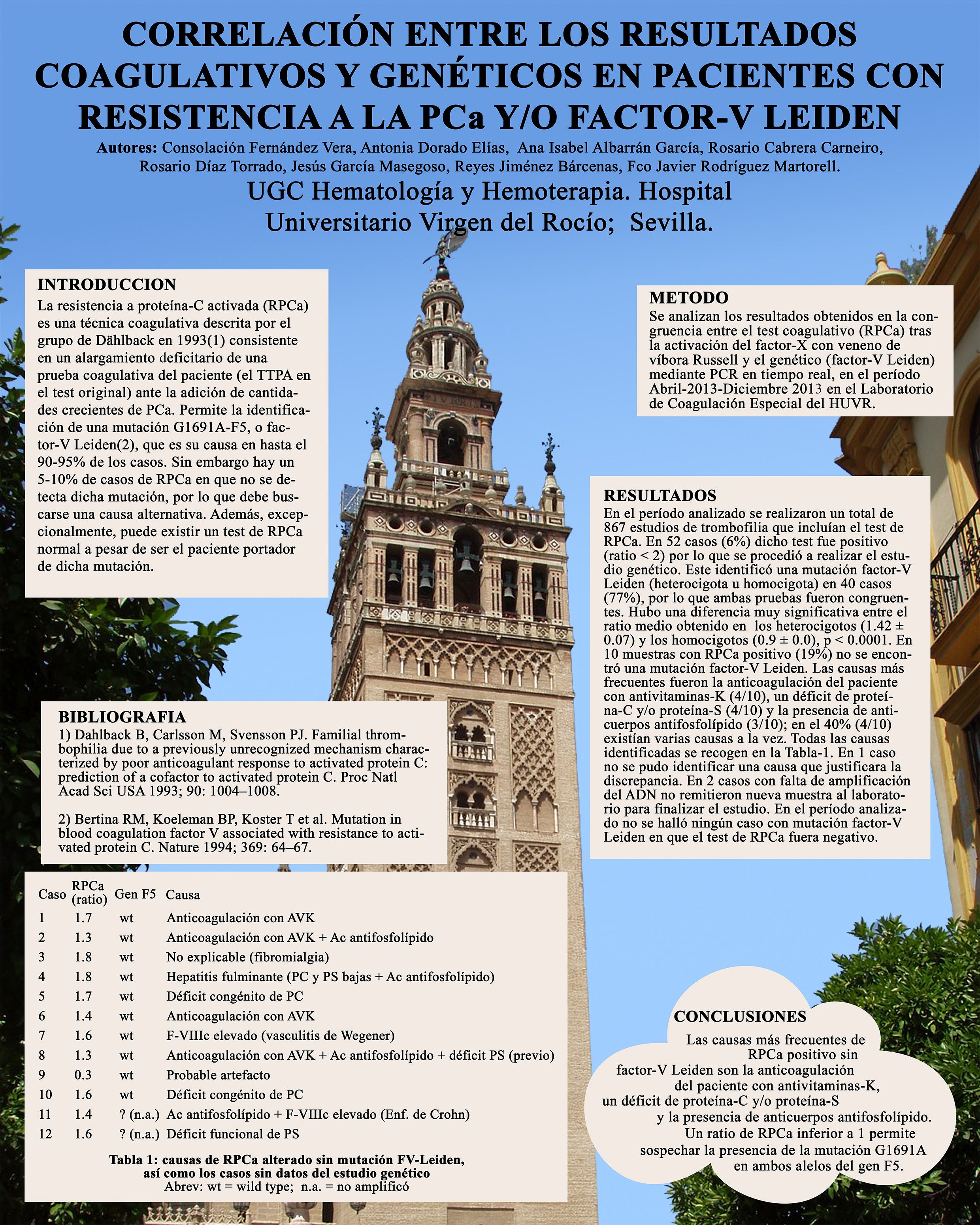 Póster 34.- Correlación entre los resultados coagulativos y genéticos en pacientes con resistencia a la PCa y/o Factor-V Leiden.
